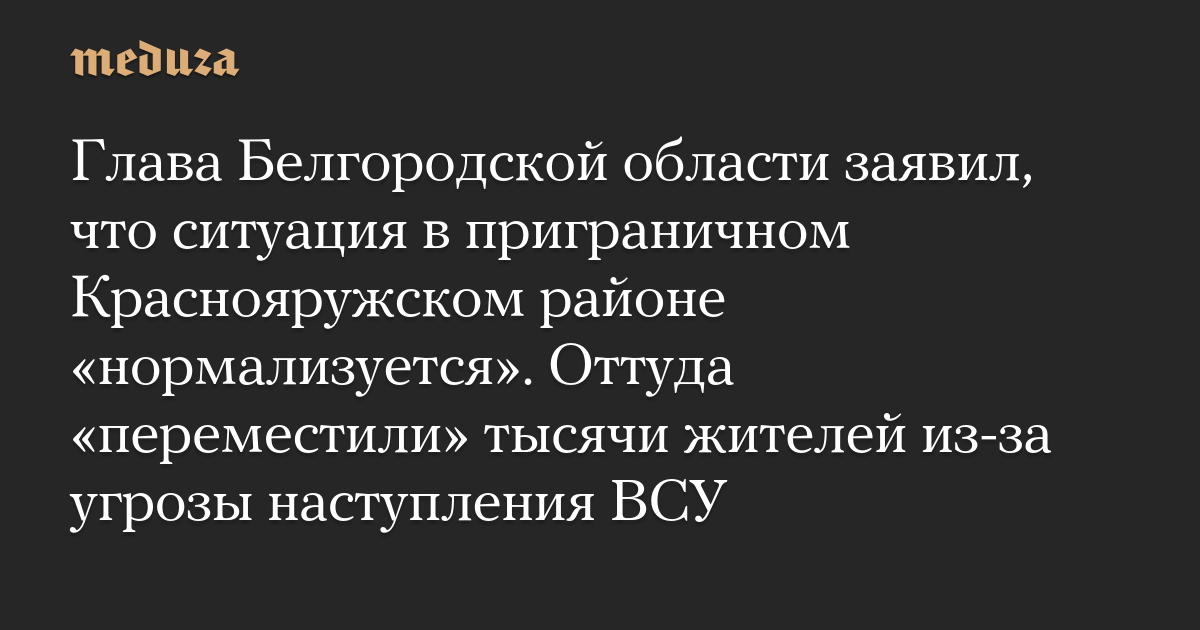 Глава Белгородской области заявил, что ситуация в приграничном Краснояружском районе «нормализуется». Оттуда «переместили» тысячи жителей из-за угрозы наступления ВСУ