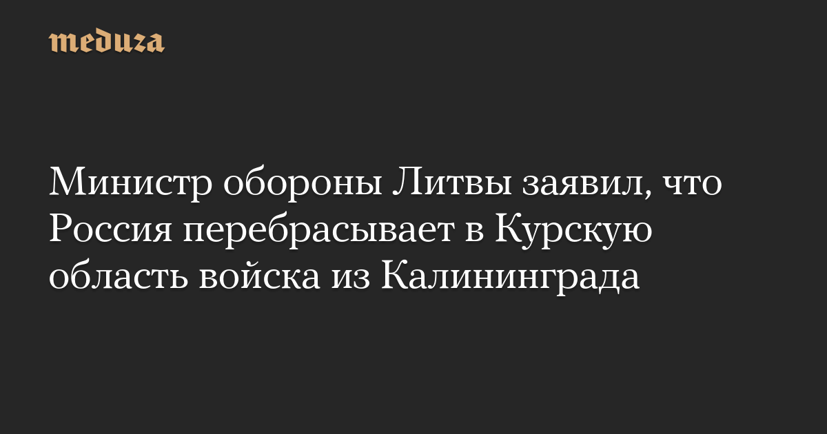 Министр обороны Литвы заявил, что Россия перебрасывает в Курскую область войска из Калининграда