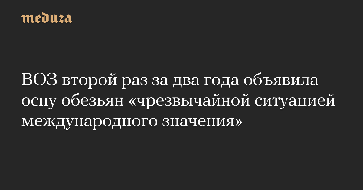 ВОЗ второй раз за два года объявила оспу обезьян «чрезвычайной ситуацией международного значения»