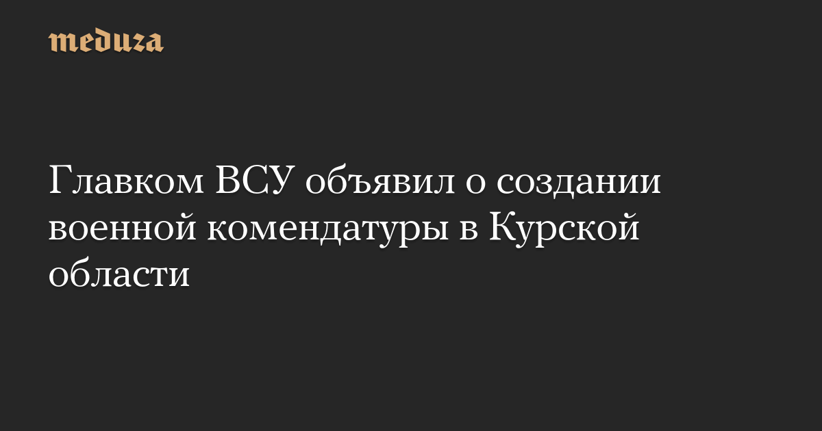 Главком ВСУ объявил о создании военной комендатуры в Курской области