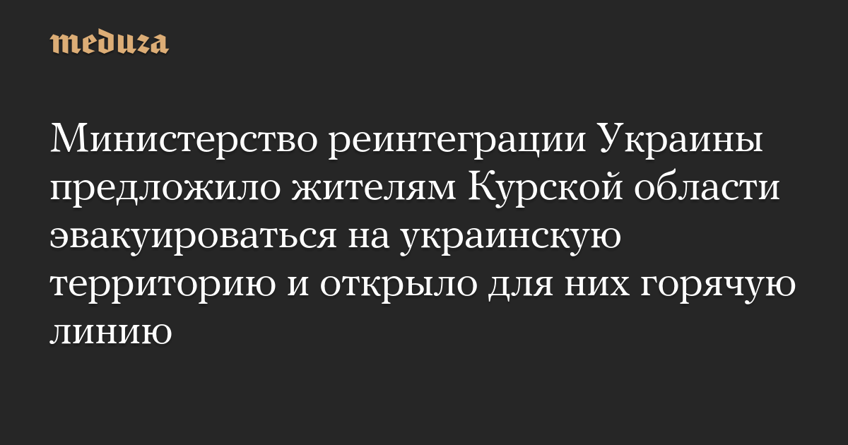 Министерство реинтеграции Украины предложило жителям Курской области эвакуироваться на украинскую территорию и открыло для них горячую линию