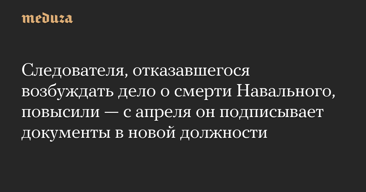 Следователя, отказавшегося возбуждать дело о смерти Навального, повысили — с апреля он подписывает документы в новой должности