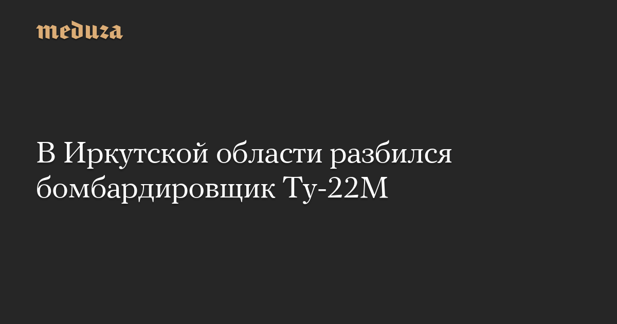 Дальний сверхзвуковой бомбардировщик Ту-22М3 потерпел крушение в Черемховском районе Иркутской области, сообщает телеграм-канал «112». Минобороны РФ подтверждает эту информацию.