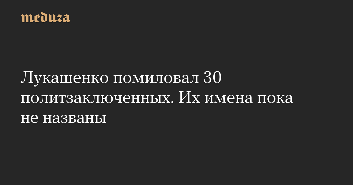 Александр Лукашенко подписал указ о помиловании 30 человек, осужденных за «преступления протестной направленности», сообщают телеграм-канал «Пул первого» и агентство «БелТА».