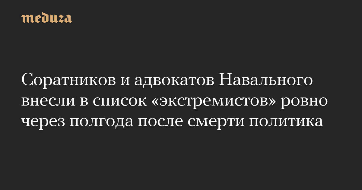 Соратников и адвокатов Навального внесли в список «экстремистов» ровно через полгода после смерти политика
