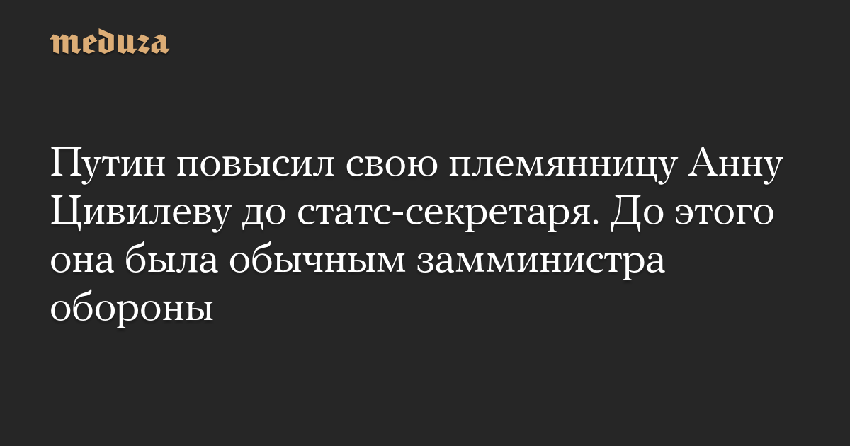 Путин повысил свою племянницу Анну Цивилеву до статс-секретаря. До этого она была обычным замминистра обороны