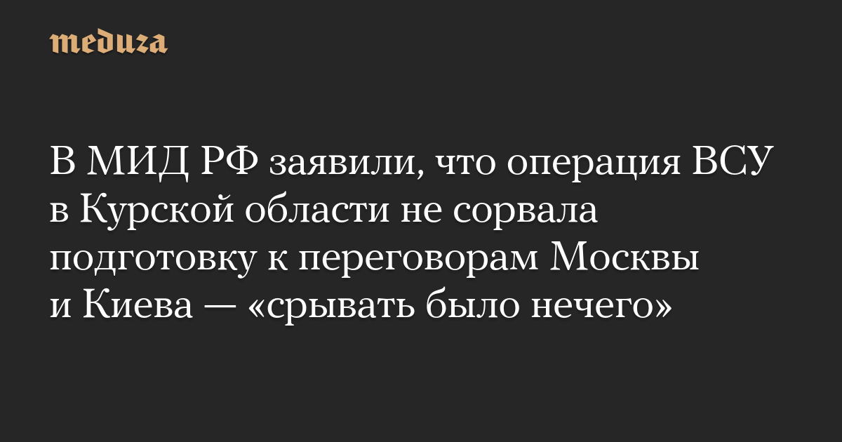 В МИД РФ заявили, что операция ВСУ в Курской области не сорвала подготовку к переговорам Москвы и Киева — «срывать было нечего»