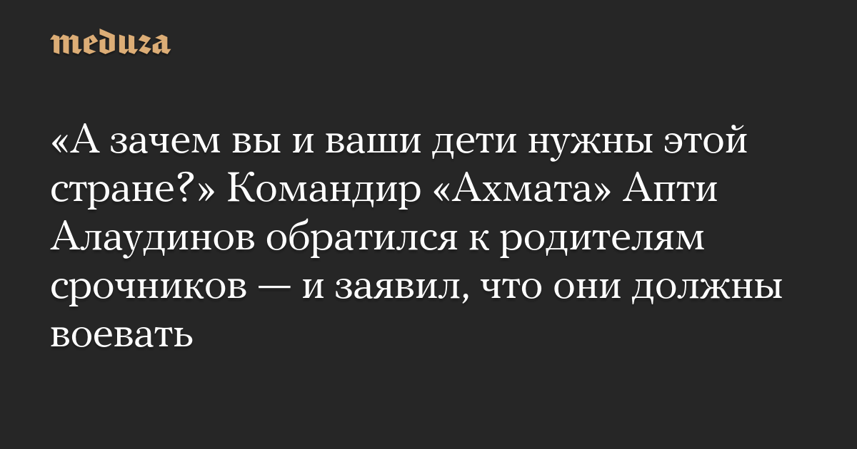«А зачем вы и ваши дети нужны этой стране?» Командир «Ахмата» Апти Алаудинов обратился к родителям срочников — и заявил, что они должны воевать