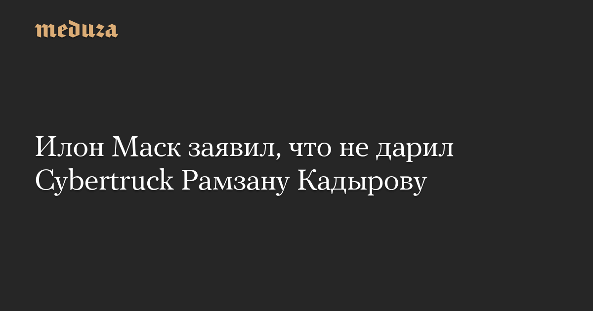 Бизнесмен Илон Маск заявил, что не дарил главе Чечни Рамзану Кадырову электромобиль Cybertruck.