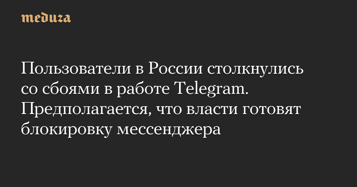 Пользователи в России столкнулись со сбоями в работе Telegram. Предполагается, что власти готовят блокировку мессенджера