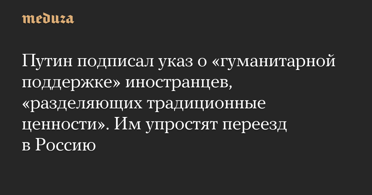 Путин подписал указ о «гуманитарной поддержке» иностранцев, «разделяющих традиционные ценности». Им упростят переезд в Россию