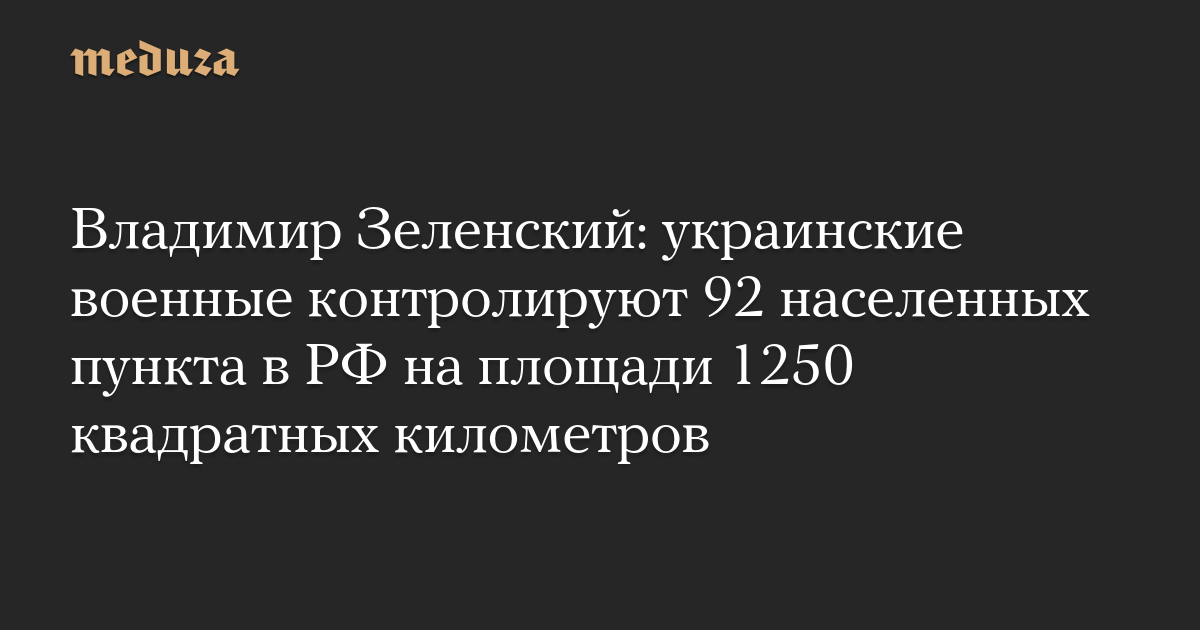Владимир Зеленский: украинские военные контролируют 92 населенных пункта в РФ на площади 1250 квадратных километров