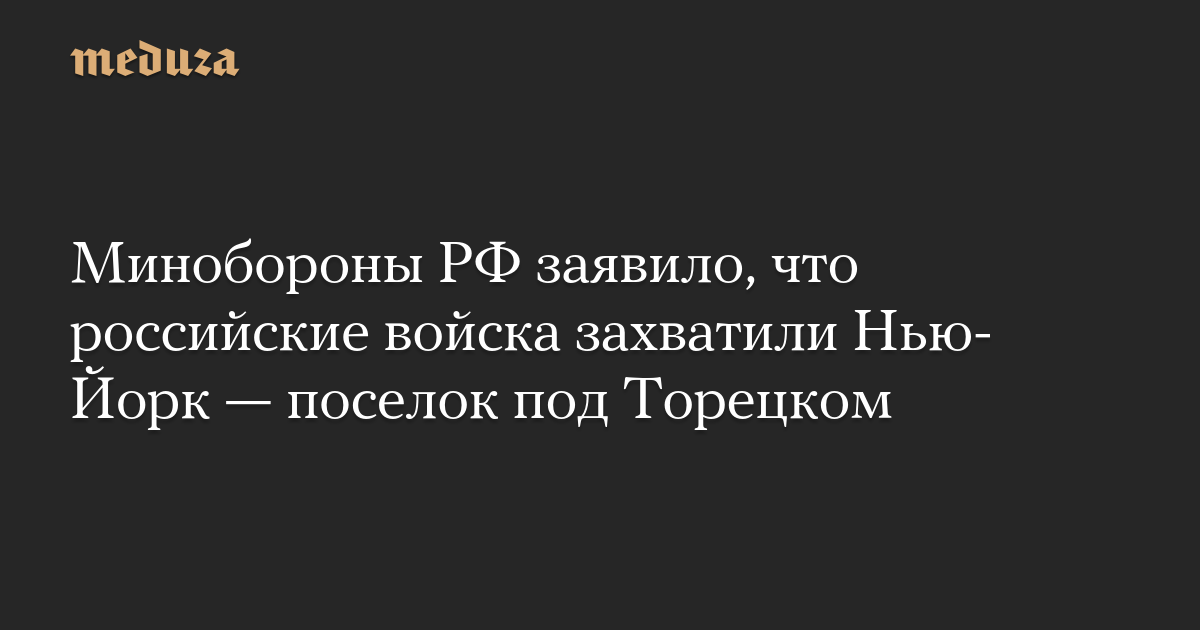 Минобороны РФ заявило, что российские войска захватили Нью-Йорк — поселок под Торецком