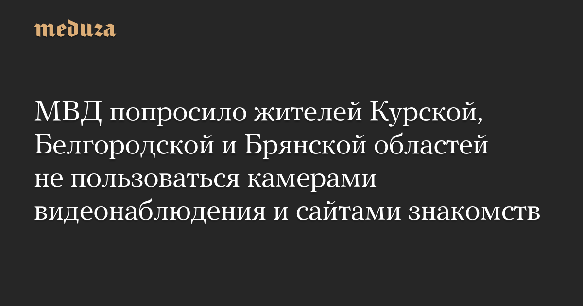 МВД попросило жителей Курской, Белгородской и Брянской областей не пользоваться камерами видеонаблюдения и сайтами знакомств