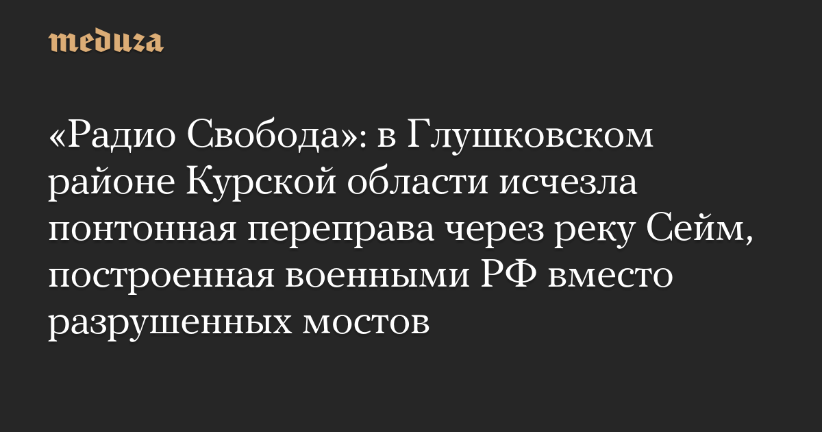 «Радио Свобода»: в Глушковском районе Курской области исчезла понтонная переправа через реку Сейм, построенная военными РФ вместо разрушенных мостов