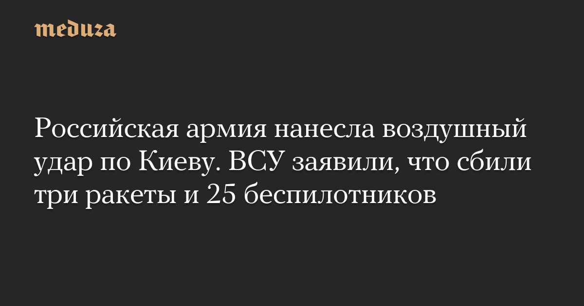 Российская армия нанесла воздушный удар по Киеву. ВСУ заявили, что сбили три ракеты и 25 беспилотников