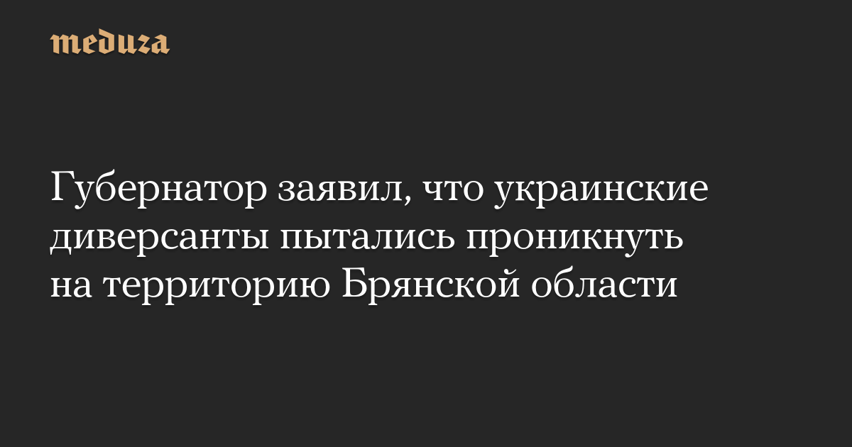 Губернатор заявил, что украинские диверсанты пытались проникнуть на территорию Брянской области