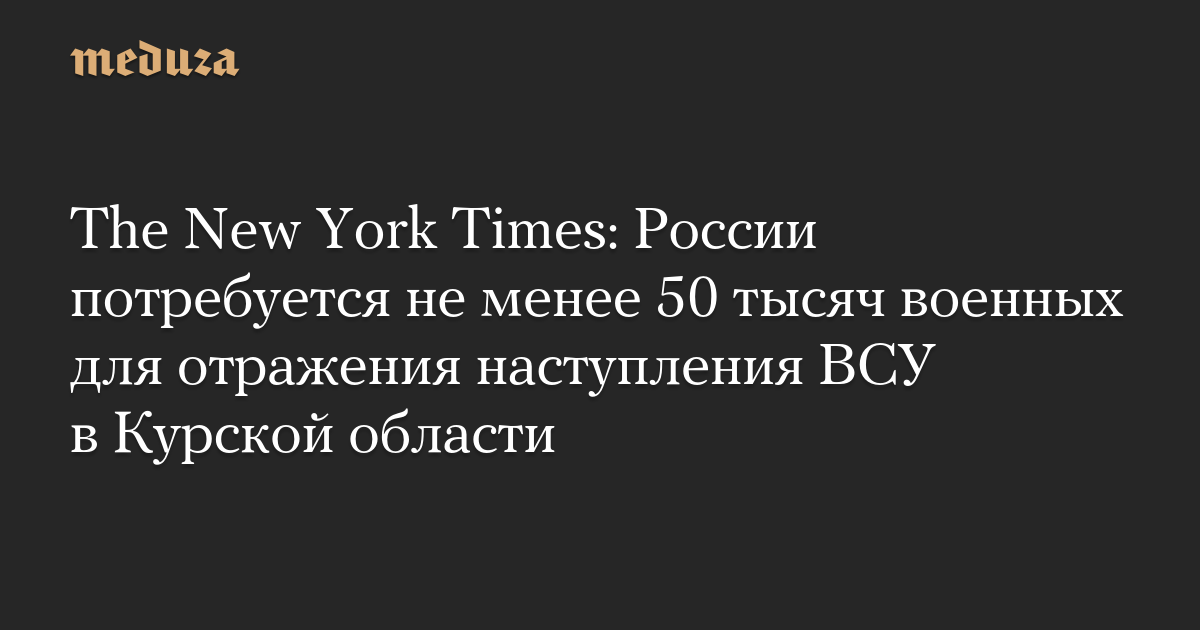 The New York Times: России потребуется не менее 50 тысяч военных для отражения наступления ВСУ в Курской области