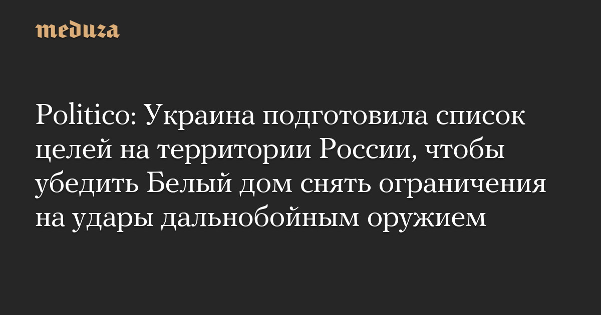 Politico: Украина подготовила список целей на территории России, чтобы убедить Белый дом снять ограничения на удары дальнобойным оружием