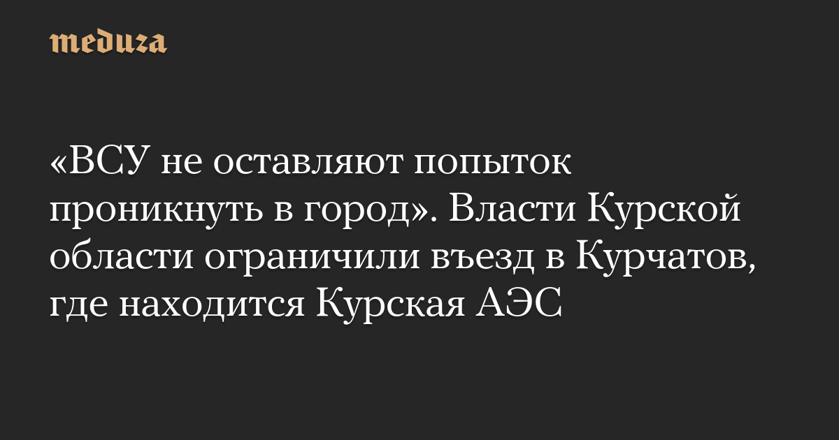 «ВСУ не оставляют попыток проникнуть в город». Власти Курской области ограничили въезд в Курчатов, где находится Курская АЭС