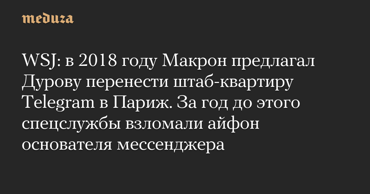 WSJ: в 2018 году Макрон предлагал Дурову перенести штаб-квартиру Telegram в Париж. За год до этого спецслужбы взломали айфон основателя мессенджера