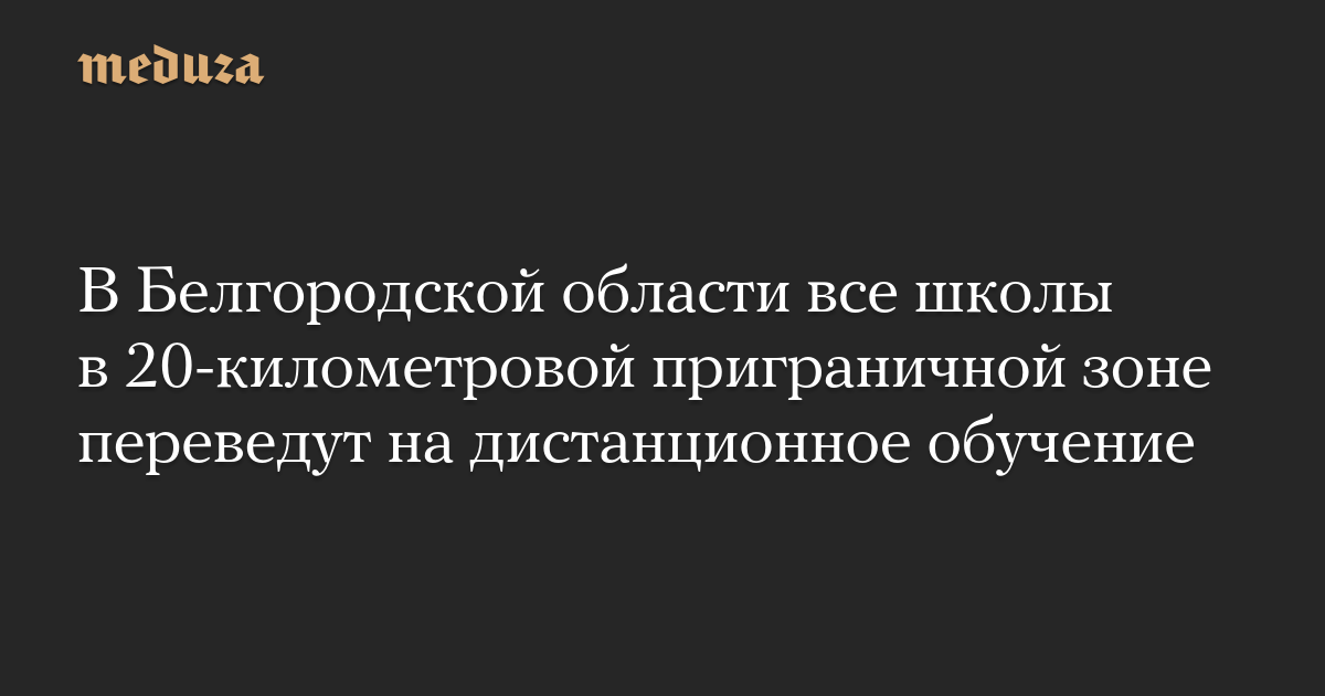 Оперативный штаб Белгородской области принял решение перевести обучение во всех школах в 20-километровой приграничной зоне в дистанционный формат, сообщил губернатор региона Вячеслав Гладков.