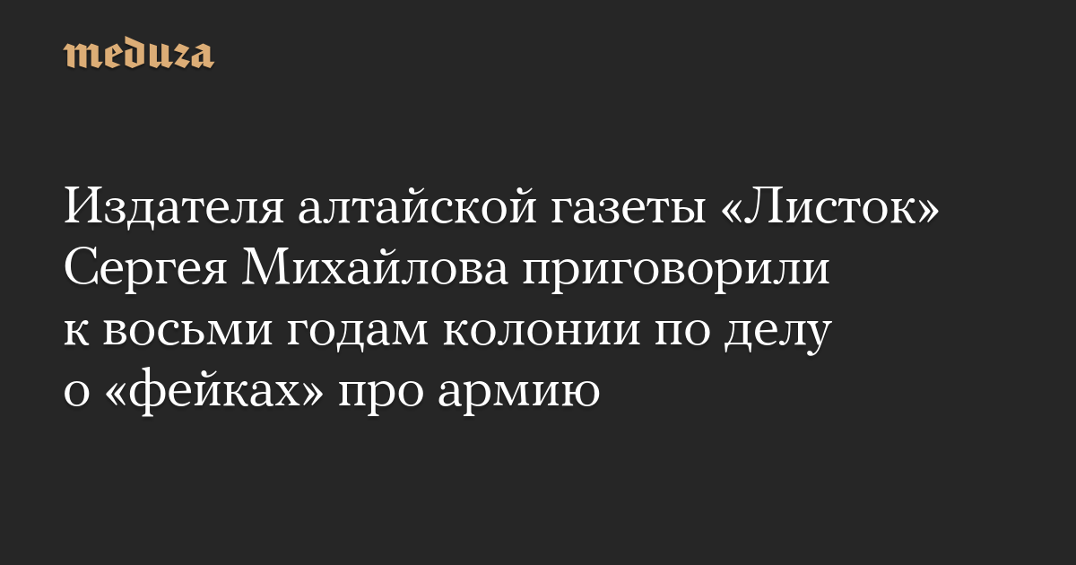 Издателя алтайской газеты «Листок» Сергея Михайлова приговорили к восьми годам колонии по делу о «фейках» про армию