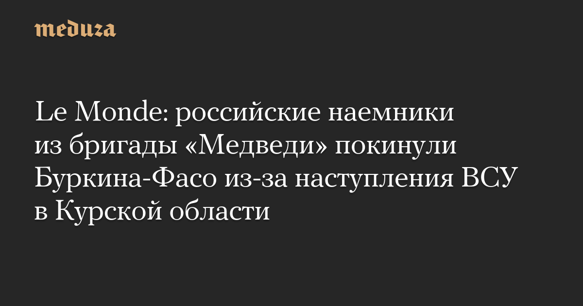Le Monde: российские наемники из бригады «Медведи» покинули Буркина-Фасо из-за наступления ВСУ в Курской области