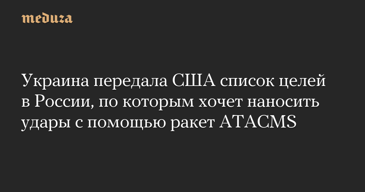 Украина передала США список целей в России, по которым хочет наносить удары с помощью ракет ATACMS