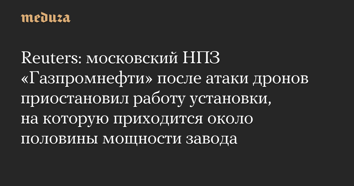 Reuters: московский НПЗ «Газпромнефти» после атаки дронов приостановил работу установки, на которую приходится около половины мощности завода