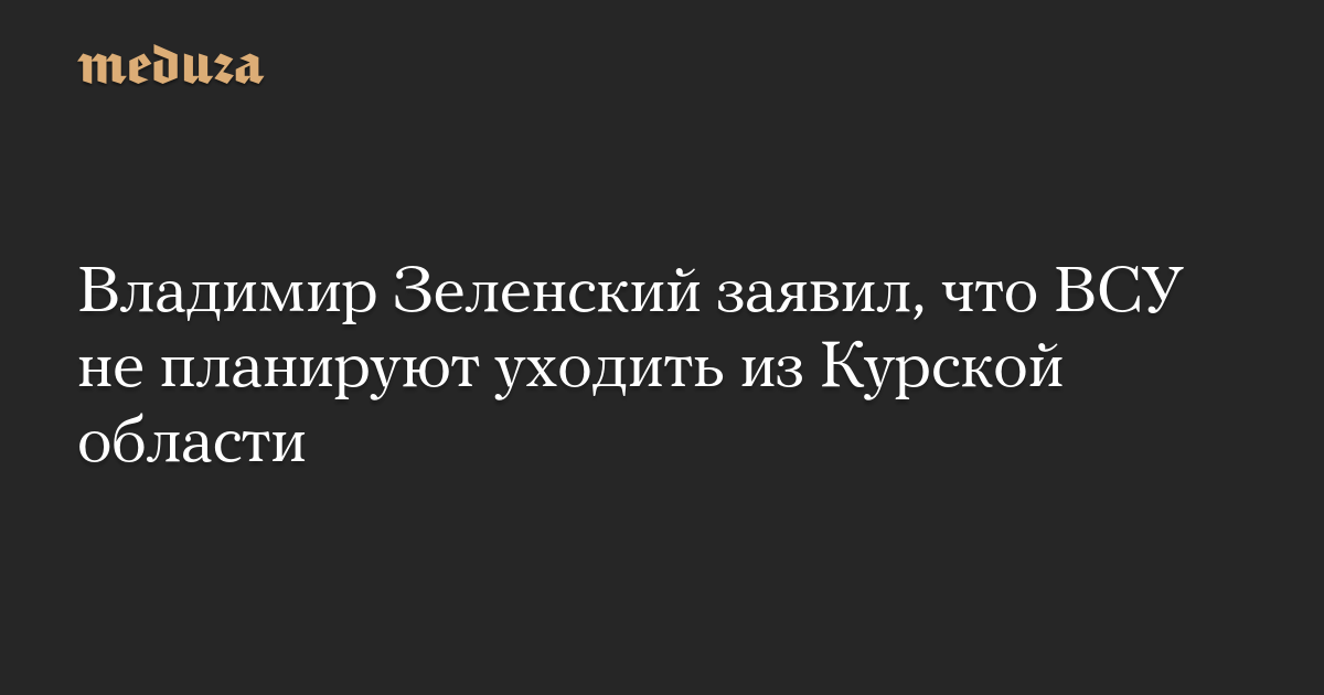 Владимир Зеленский заявил, что ВСУ не планируют уходить из Курской области