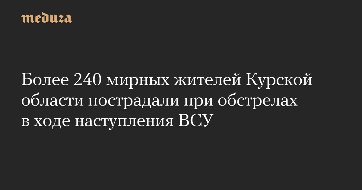 Более 240 мирных жителей Курской области пострадали при обстрелах в ходе наступления ВСУ