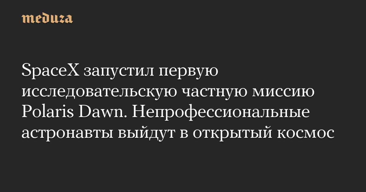 SpaceX запустил первую исследовательскую частную миссию Polaris Dawn. Непрофессиональные астронавты выйдут в открытый космос