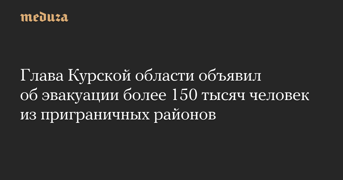 Глава Курской области объявил об эвакуации более 150 тысяч человек из приграничных районов
