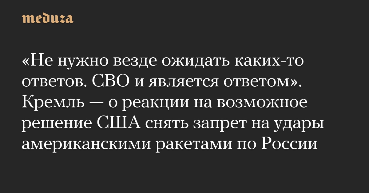 «Не нужно везде ожидать каких-то ответов. СВО и является ответом». Кремль — о реакции на возможное решение США снять запрет на удары американскими ракетами по России