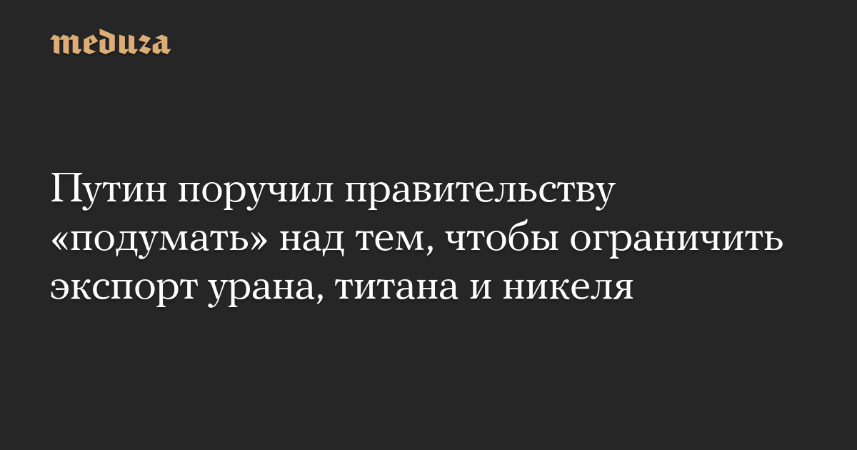 «Михаил Владимирович [Мишустин], у меня к вам просьба. Вы посмотрите, пожалуйста, по некоторым видам товаров, которые мы в большом количестве поставляем на мировой рынок, — к нам ограничивают поставки ряда товаров, но может быть нам тоже подумать об определенных ограничениях. Уран, титан, никель. Себе во вред только ничего не нужно делать», — сказал Путин.