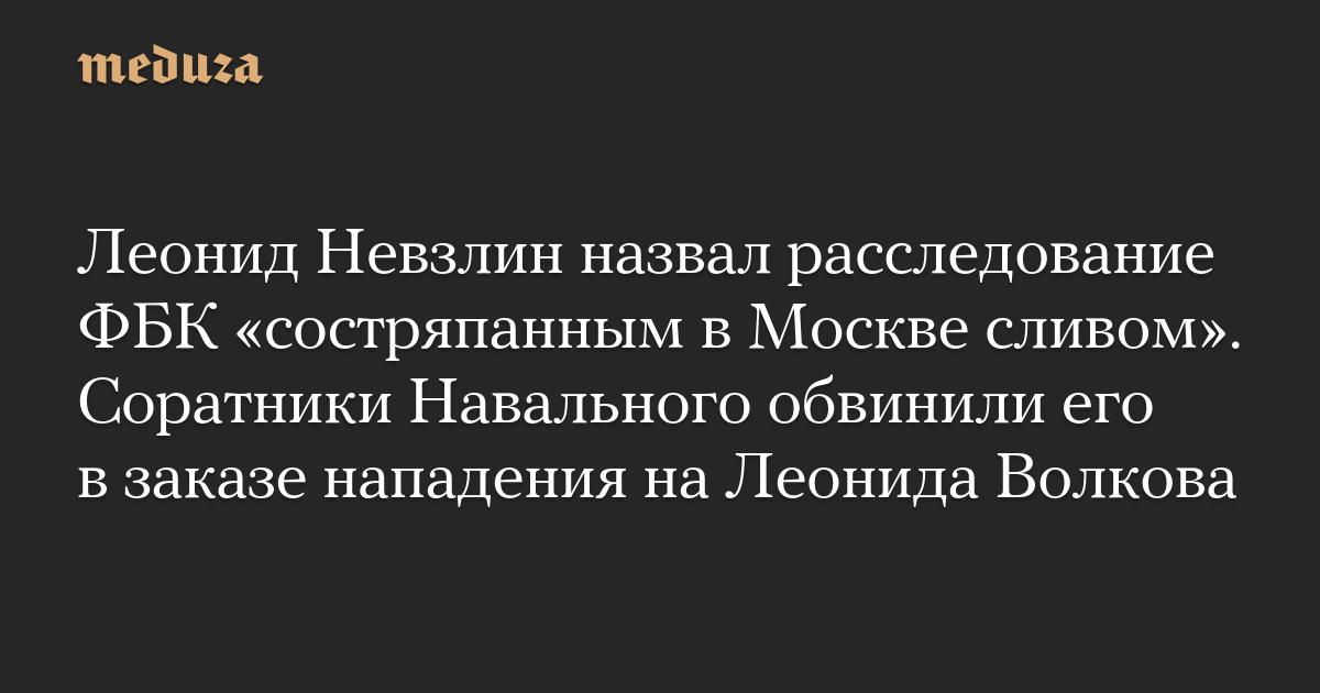 Соратники Навального обвинили Леонида Невзлина в том, что он заказал покушение на политика Леонида Волкова в Вильнюсе, а также причастен к организации нападений на директора ФБК Ивана Жданова в Женеве и жену экономиста Максима Миронова Александру Петрачкову в Аргентине.