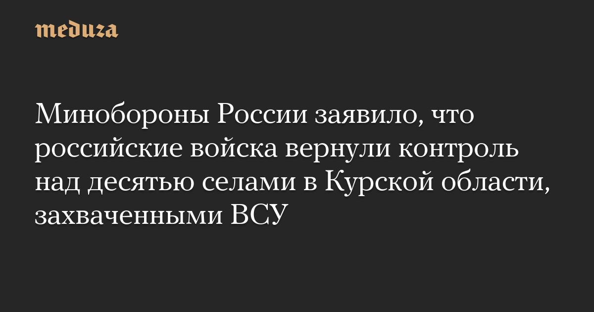 Минобороны России заявило, что российские войска вернули контроль над десятью селами в Курской области, захваченными ВСУ