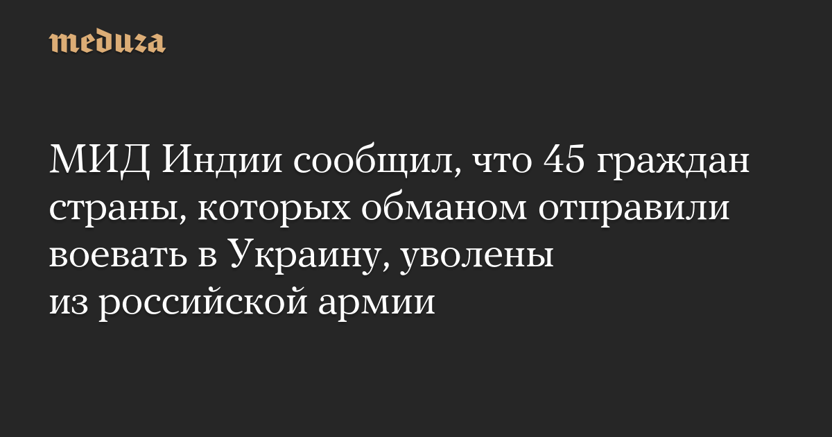 МИД Индии сообщил, что 45 граждан страны, которых обманом отправили воевать в Украину, уволены из российской армии