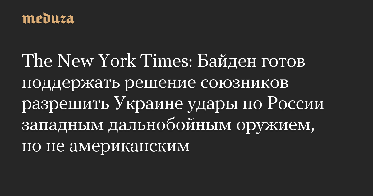 The New York Times: Байден готов поддержать решение союзников разрешить Украине удары по России западным дальнобойным оружием, но не американским