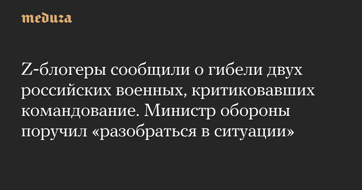 Z‑блогеры сообщили о гибели двух российских военных, критиковавших командование. Министр обороны поручил «разобраться в ситуации»