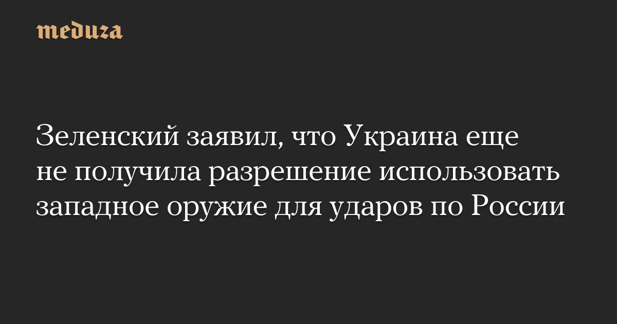 Зеленский заявил, что Украина еще не получила разрешение использовать западное оружие для ударов по России