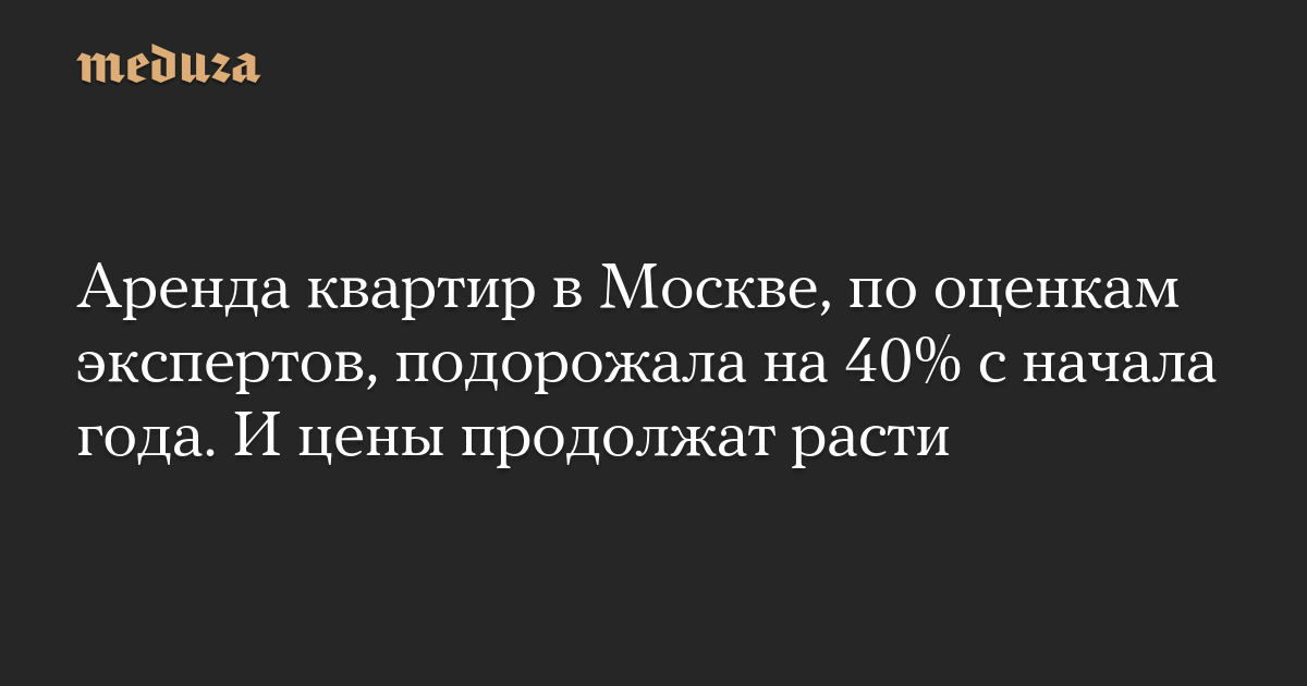 Аренда квартир в Москве, по оценкам экспертов, подорожала на 40% c начала года. И цены продолжат расти