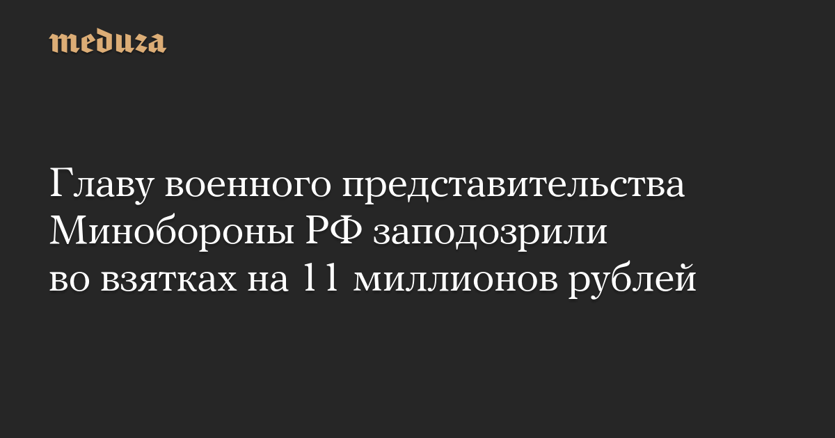 Главу военного представительства Минобороны РФ заподозрили во взятках на 11 миллионов рублей