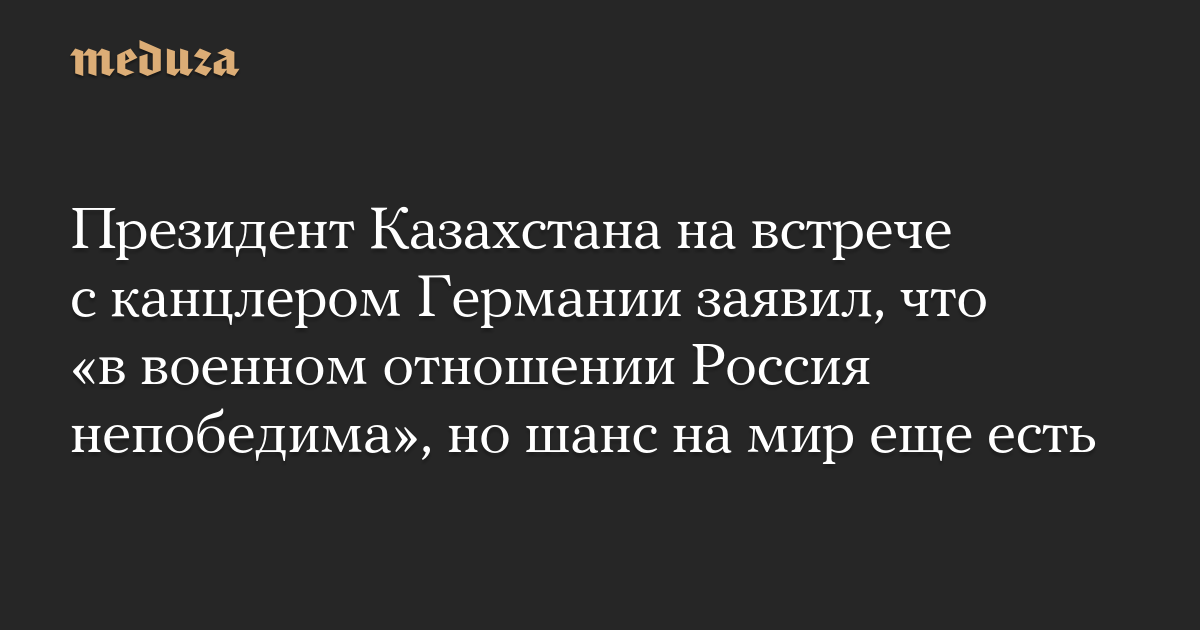 Президент Казахстана на встрече с канцлером Германии заявил, что «в военном отношении Россия непобедима», но шанс на мир еще есть