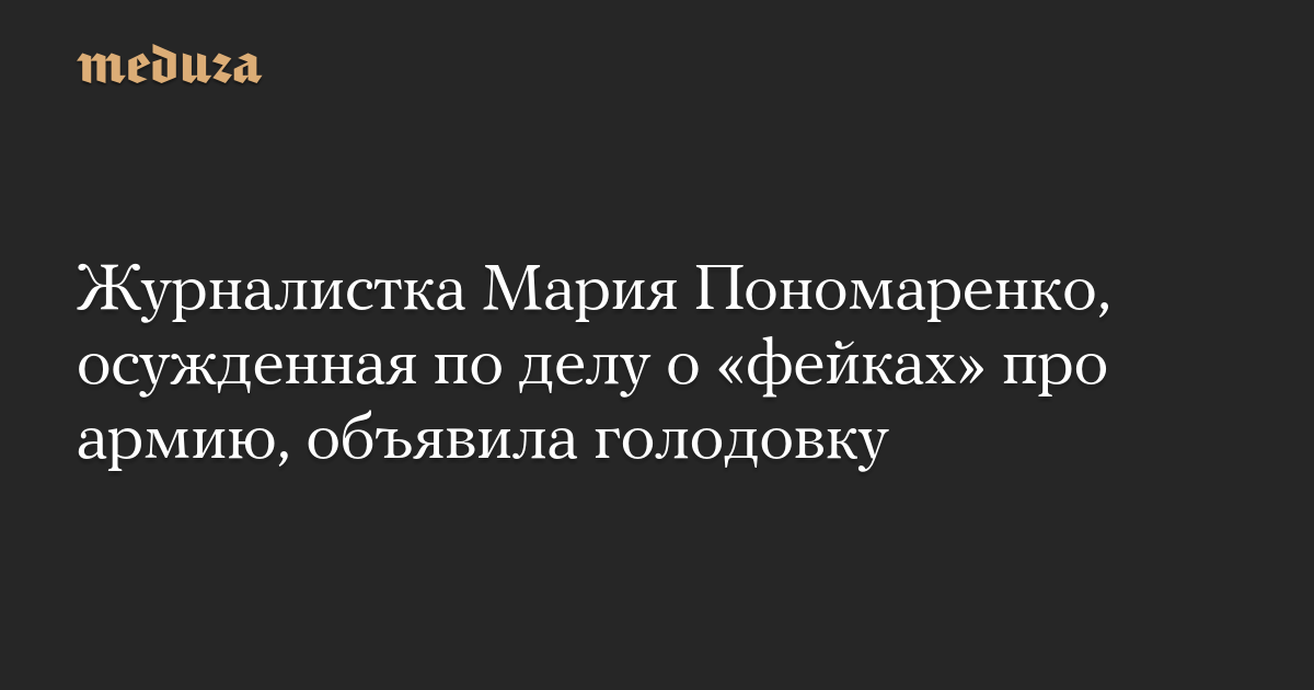 Журналистка Мария Пономаренко, осужденная по делу о «фейках» про армию, объявила голодовку