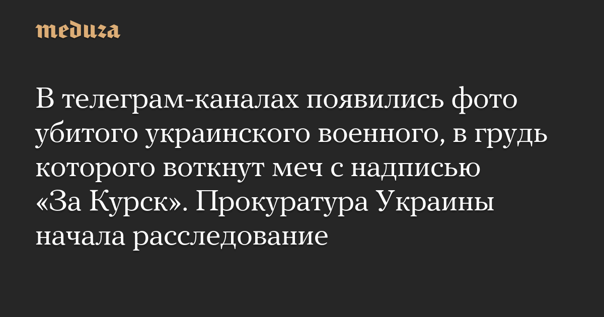 В телеграм-каналах появились фото убитого украинского военного, в грудь которого воткнут меч с надписью «За Курск». Прокуратура Украины начала расследование