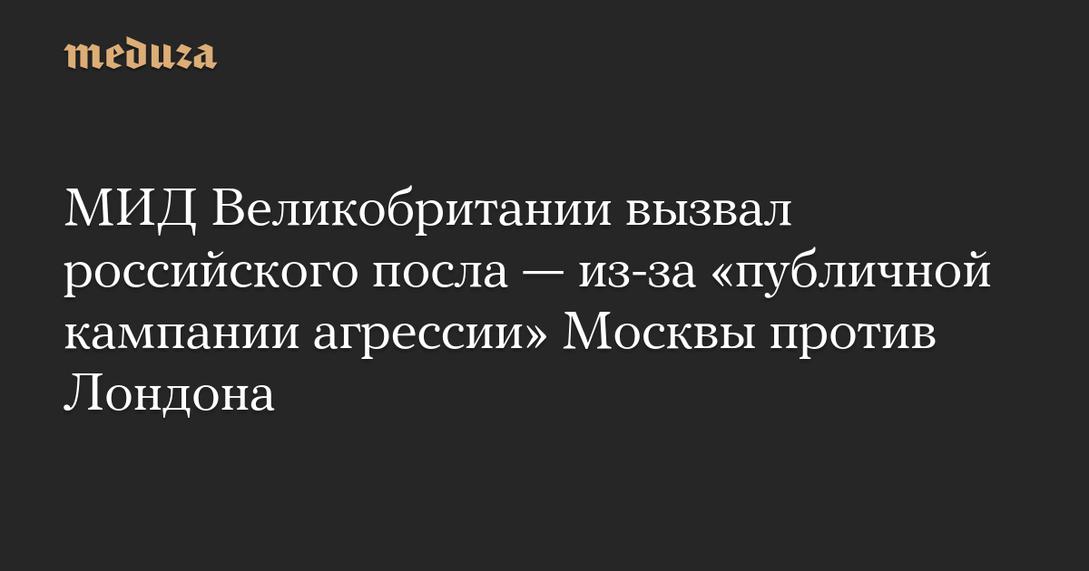 МИД Великобритании вызвал российского посла — из-за «публичной кампании агрессии» Москвы против Лондона