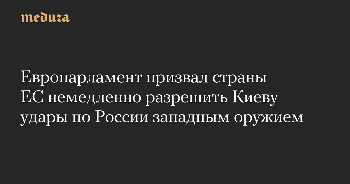 «Призываем государства-члены [Евросоюза] немедленно снять ограничения на использование западных систем вооружения, поставленных в Украину, в отношении законных военных целей на территории России», — говорится в одном из пунктов резолюции.