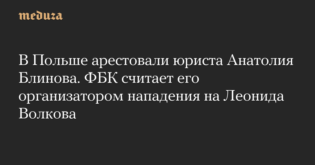 В Польше арестовали юриста Анатолия Блинова. ФБК считает его организатором нападения на Леонида Волкова